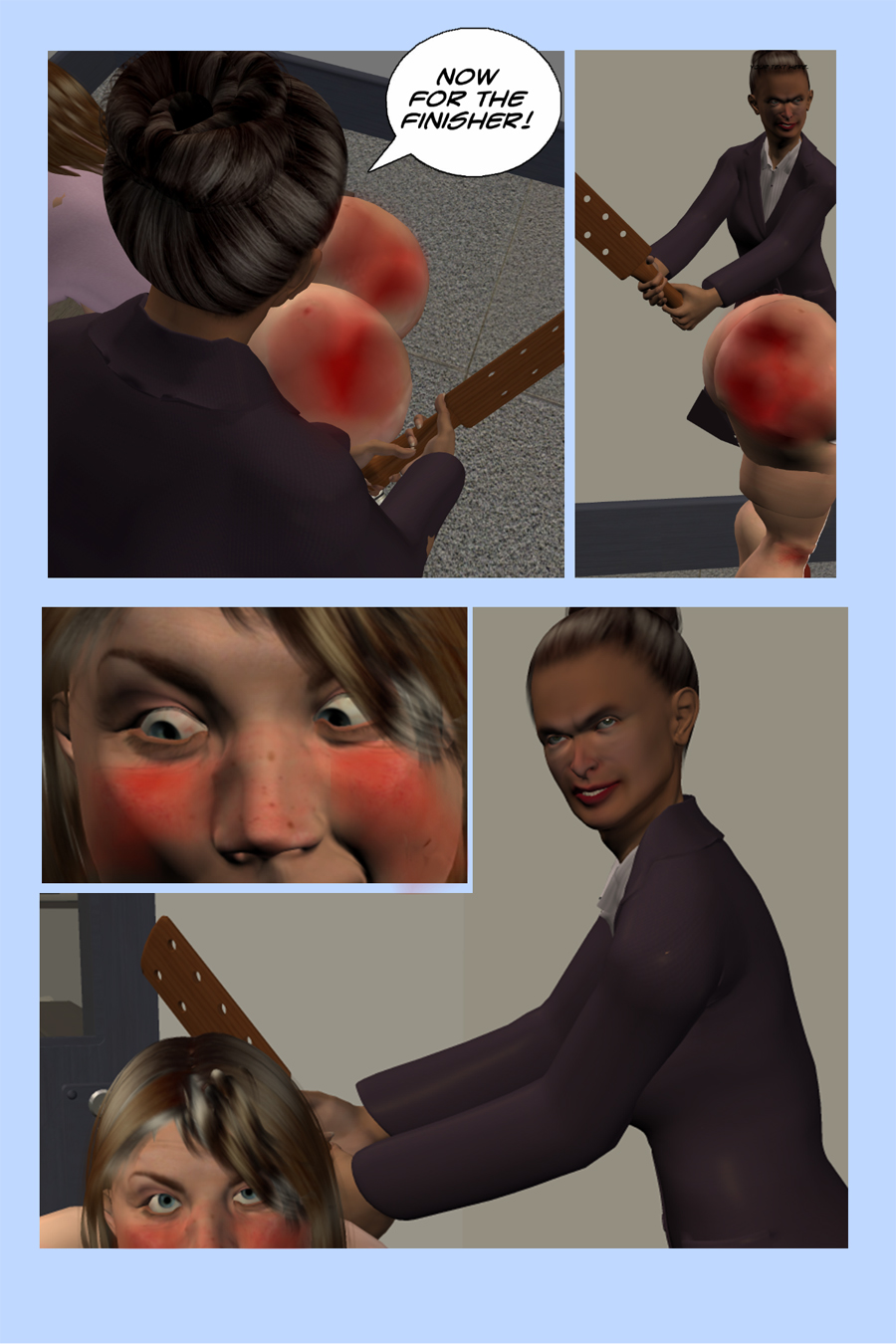 The story so far... plump middle aged milf Gloria, aka Porky, has spent five years of hell in jail, suffering daily spankings and worse at the hands of the inmates. Now she's being released. But the sadistic warden has promised Gloria one last and particularly hard thrashing, and she bends the fat mom over her desk...
